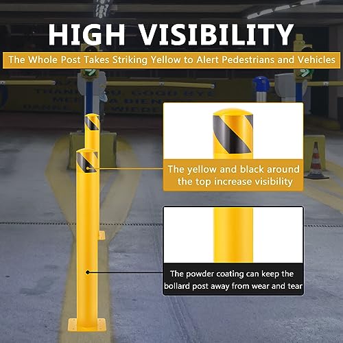 36” x 4.5 ” Safety Bollard Post Reflective Yellow Pipe Bollards Steel Parking Barrier Nocturnal Lifting Ground Barrier With 4 Free Anchor Bolts, Heavy Duty Powder Coated Safety Parking Barrier Post 11Ga(3MM) Base-8×8”
