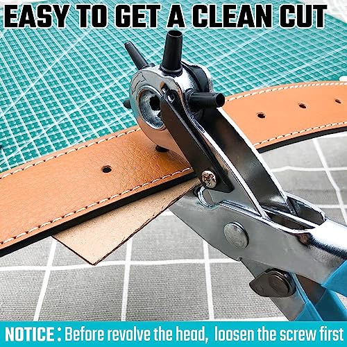 - Rotatable hole heads in 6 different sizes: 2 mm, 2.5 mm, 3 mm, 3.5 mm, 4 mm and 4.5 mm. Suitable for all kinds of surfaces, round holes in leather, belts, fabric, pet collars, especially useful leather hole punch.