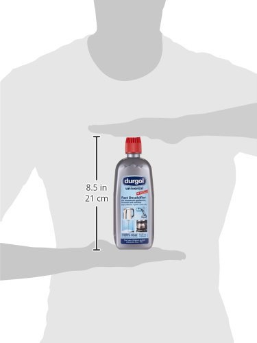 Details: Designed to break up harmful calcium deposits and limescale buildup in household surfaces and appliances, durgol Universal is a professional grade descaler solution that will help you maintain and enhance the performance of your kitchen and household appliances. This descaler solution is made from sulfamic acid to break up tough buildup and deposits. Unlike other citric-acid based solutions, this powerful cleaner will clean up even tough limescale buildup that could compromise the performance of your machines. This formula is designed to be used on a wide range of household appliances and surfaces, from your kitchen sink, coffee maker and tea kettle, to ceramic tile, faucets, and more. Regular descaling of appliances will help machines perform at their highest level, so you can continue to host family, friends, and dinner party guests at your house! These descalers leave no residue, odor, or aftertaste and conveniently come ready for use, no preparation necessary. With durgol Universal, you can keep your bathroom, kitchen, and home limescale free. Say goodbye to ugly, hard water stains on the shower or kitchen sink. This powerful solution will break up even the toughest buildup!