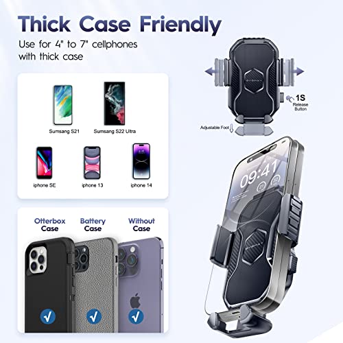 - Fit for All Smart Phone: Longer and stronger arm of this car phone holder allow it to accommodate big phone and tick case.