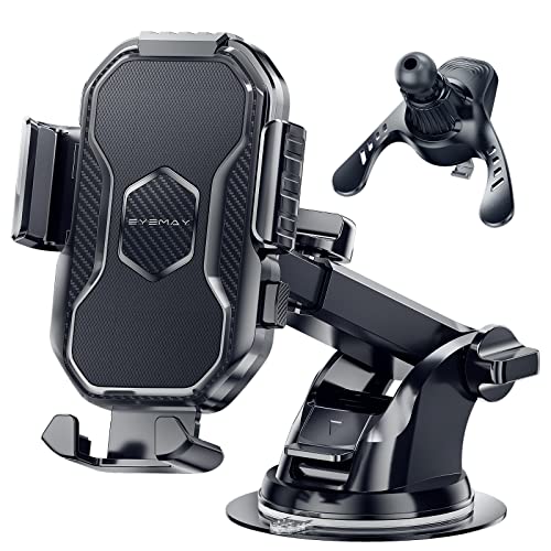- Adjuestable Long Arm: EYEMAY phone mount for car has a 360° rotation ball-joint and telescopic arm, you can adjust best anlgle as you wish. Provide you with safer driving whether you are navigating, or charging. Applicable to all cars, SUVs, trucks, and taxis, Ubers.