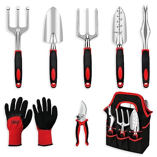 Gardening Tool Set, 8 Pieces Aluminum Heavy Duty Gardening Kit with Ergonomic Handles, Gardening Bag, Ideal Gardening Tool Set – Gifts for Men and Women