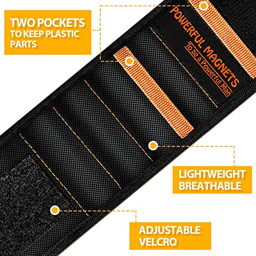 - The perfect stitching of the magnetic wristband with strong 15 magnets, makes the magnetic tool band wrap around almost the entire wrist.Magnetic wristband with a large surface area can easily store and hold magnetic items as screws, nails, screwdriver bits, drill bits,nuts, washers and bolts, etc.Two pockets for non-magnetic items. Super-handy, it can be called a necessity of toolbox. Men gifts for birthday,fathers day gifts for men dad husband.