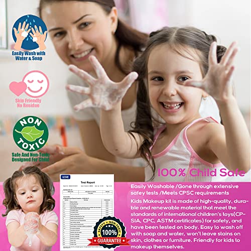 - 🌸🌸【Washable Makeup X 100% Child Safe】:Kids makeup kit for little girls set use water-soluble formula, no added preservatives, mild and non-irritating, no burden on the skin.Kids Makeup Kit Toys for Girls The smooth exterior design makes it not easy to be damaged and protect children’s soft hands, Easy to Wash, Non-Toxic. Meet the standards of international children’s toys(CPSIA, CPC, ASTM certificates)birthday gifts, a Christmas gift, Easter toys,toys for 5+ year old girls