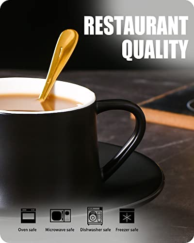 - Large Capacity: Each cappuccino cup measures at 3″ in diameter and 2.3″ in height, saucer plates measure 6″ in diameter, and they can hold 7 oz. Perfect for cafe latte, cappuccino, Americano, hot chocolate, mochaccino, tea, or your favorite beverages