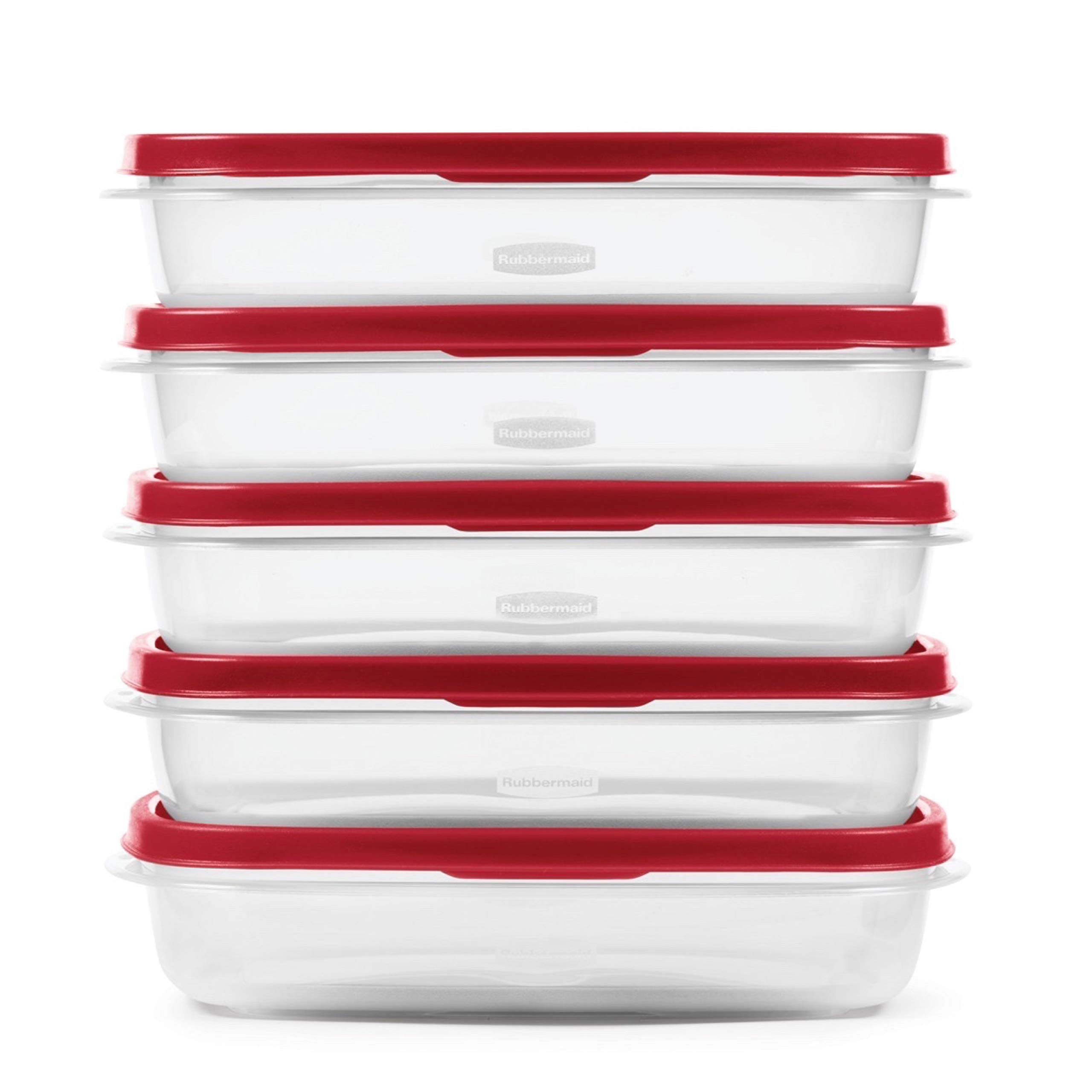 Details: Rubbermaid EasyFindLids Meal Prep Containers are designed to make meal prep easy, plus keep your kitchen organized. These 5.5-cup, one-compartmentfood containers are perfect for any meal. With the EasyFindLids System, lids and bases snap together for easy organization, the rectangular design is ideal for stacking, bases nest together, and one lid fits multiple bases. Containers are microwave-safe for reheating, and are top-rack dishwasher-safe, freezer-safe, and BPA-free. This 5-pack set of Rubbermaid containers is perfect for a week’s worth of meals!